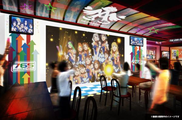 今回はバンダイナムコグループを代表するクロスメディア作品である「アイドルマスター」とタイアップ。作品をテーマとしたフード&ドリンク、オリジナルグッズはもちろん、「アイドルマスター」の映像と音楽を活かしたLIVE感あふれる空間で、個性豊かなアイドルたちの魅力と、プロデューサー(お客様)同士の一体感を堪能することができます。