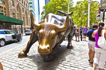 ウオール街のチャージング・ブルはニューヨーク在住のイタリア系アメリカ人アーティスト、Arturo Di Modica氏が作り、ゲリラアートとしてニューヨーク証券取引所のクリスマスツリーの下に1989年12月15日に突然設置され、人々へのクリスマスプレゼントとされ多くの人々の賞賛を集めた。チャージング・ブルは金融の世界では経済成長のシンボルでもあり、株価が上昇する強気の相場はブル・マーケットと言われている。昨日、日経平均株価も7年4カ月ぶりに一時1万8000円を超えた。