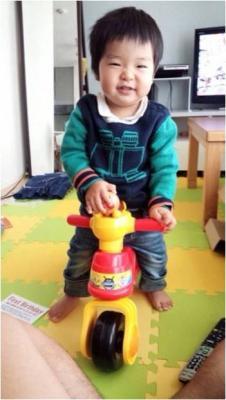 大好きなアンパンマンの三輪車が届きました。会社からプレゼントが届いたので、妻もびっくりしながらも喜んでくれていました。