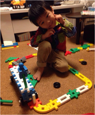 色々な形に組み立てができるレゴブロックが届き、早速線路を作っておもちゃの電車を走らせて遊んでいました。その夜は嬉しすぎてなかなか子供が寝つきませんでした(笑)。