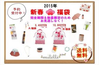 また、2014年も残すところ1ヶ月となりましたので、2015年 年始のお楽しみ!大満足のボリューム!!スタッフが総力を尽くして厳選した商品を福袋にし予約販売を開始いたしました!