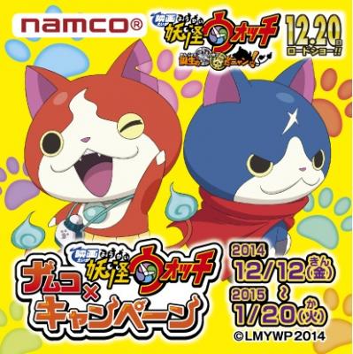 株式会社ナムコ(本社:東京都港区)は、2014年12月20日(土)より全国の映画館で公開される「映画 妖怪ウォッチ 誕生の秘密だニャン!」の公開を記念し、ナムコ×映画「妖怪ウォッチ」キャンペーンを全国約200店舗のナムコ直営アミューズメント施設にて2014年12月12日(金)から2015年1月20日(火)の日程で開催致します。