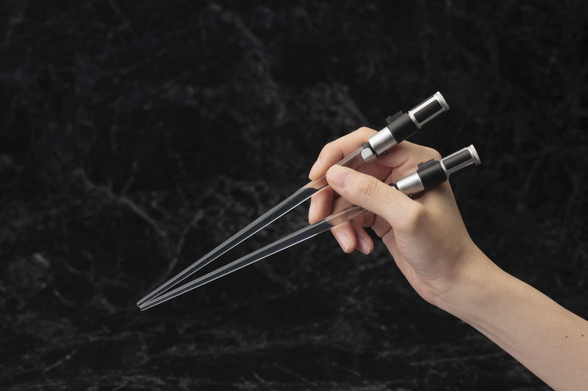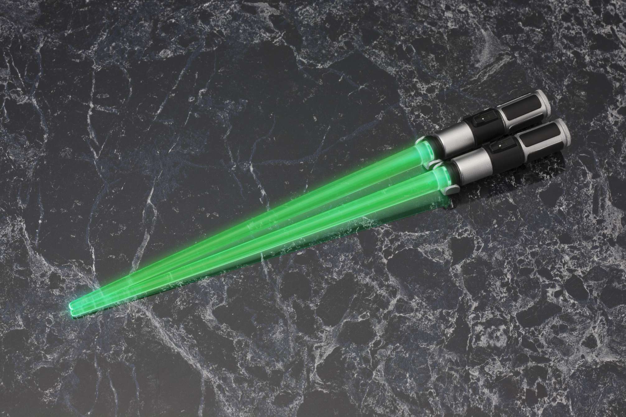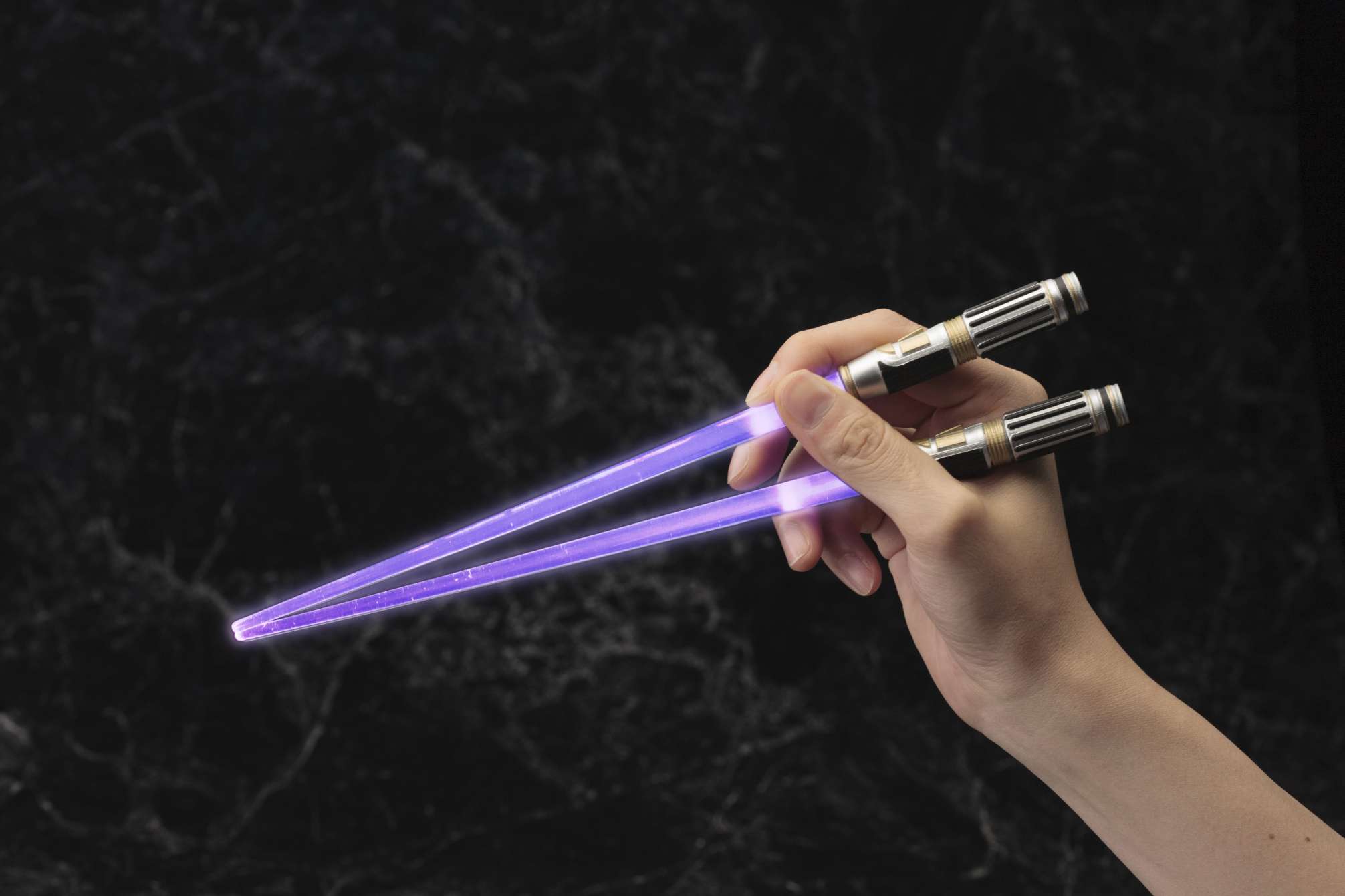 映画『スター・ウォーズ』より、LED発光ギミックを搭載した“光るお箸”第2弾は、ライトセーバーチョップスティックでも好評のジェダイ・マスター「ヨーダ」と「メイス・ウィンドゥ」。ヨーダはグリーンに光るライトセーバー、メイス・ウィンドゥは印象的な紫のライトセーバーをモデルに、劇中同様スイッチボタンをONにする事で刀身である箸先が光る仕様となっています。箸先端の光刃部分は無色透明のクリア成型となっており、取り外しが可能で、洗って清潔に保つことができます。スター・ウォーズファンへは勿論の事、パーティグッズやプレゼントとしても喜ばれる事間違いなしのアイテムです。貴方の食卓へフォースのパワーをお届けします。