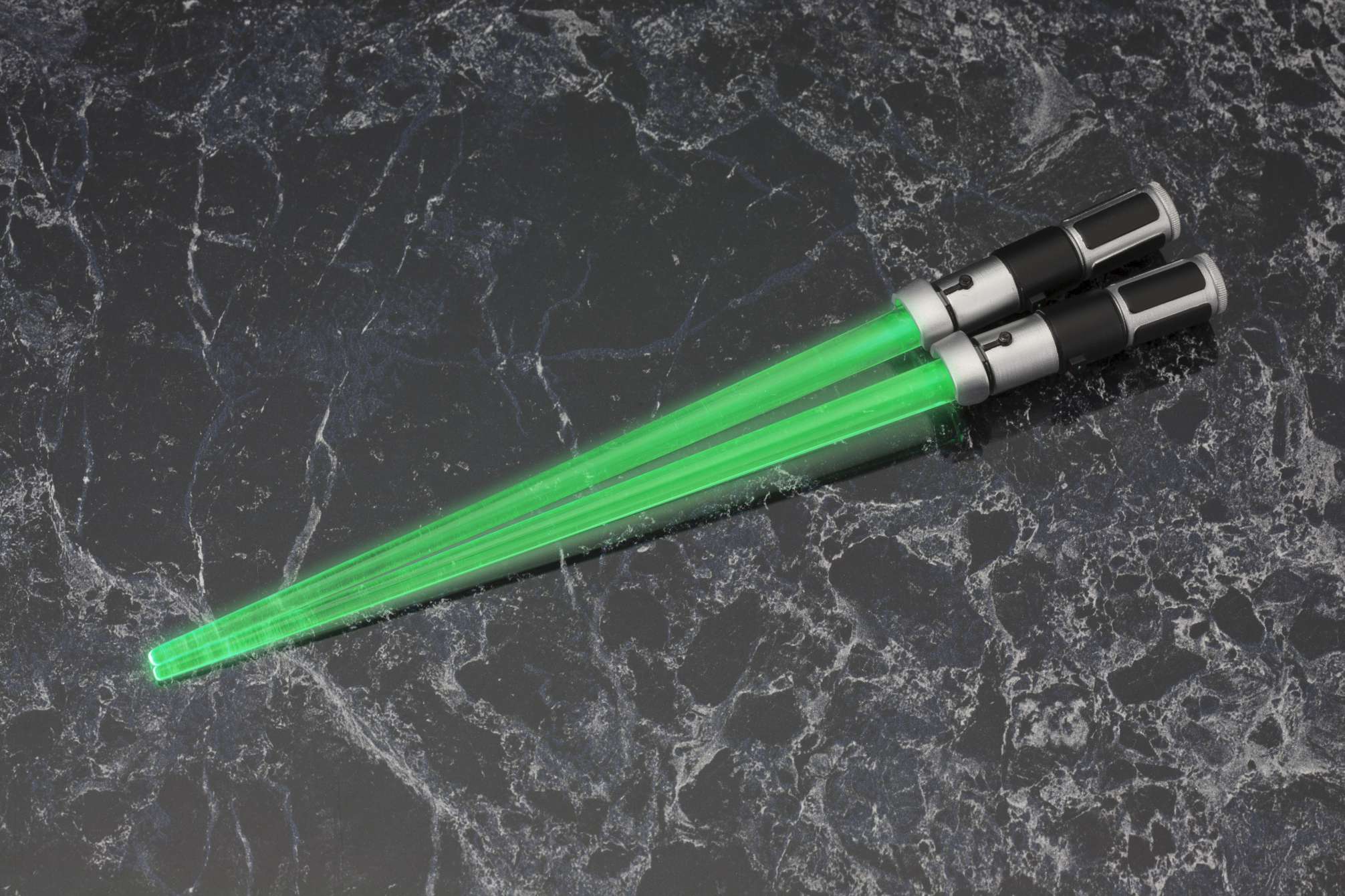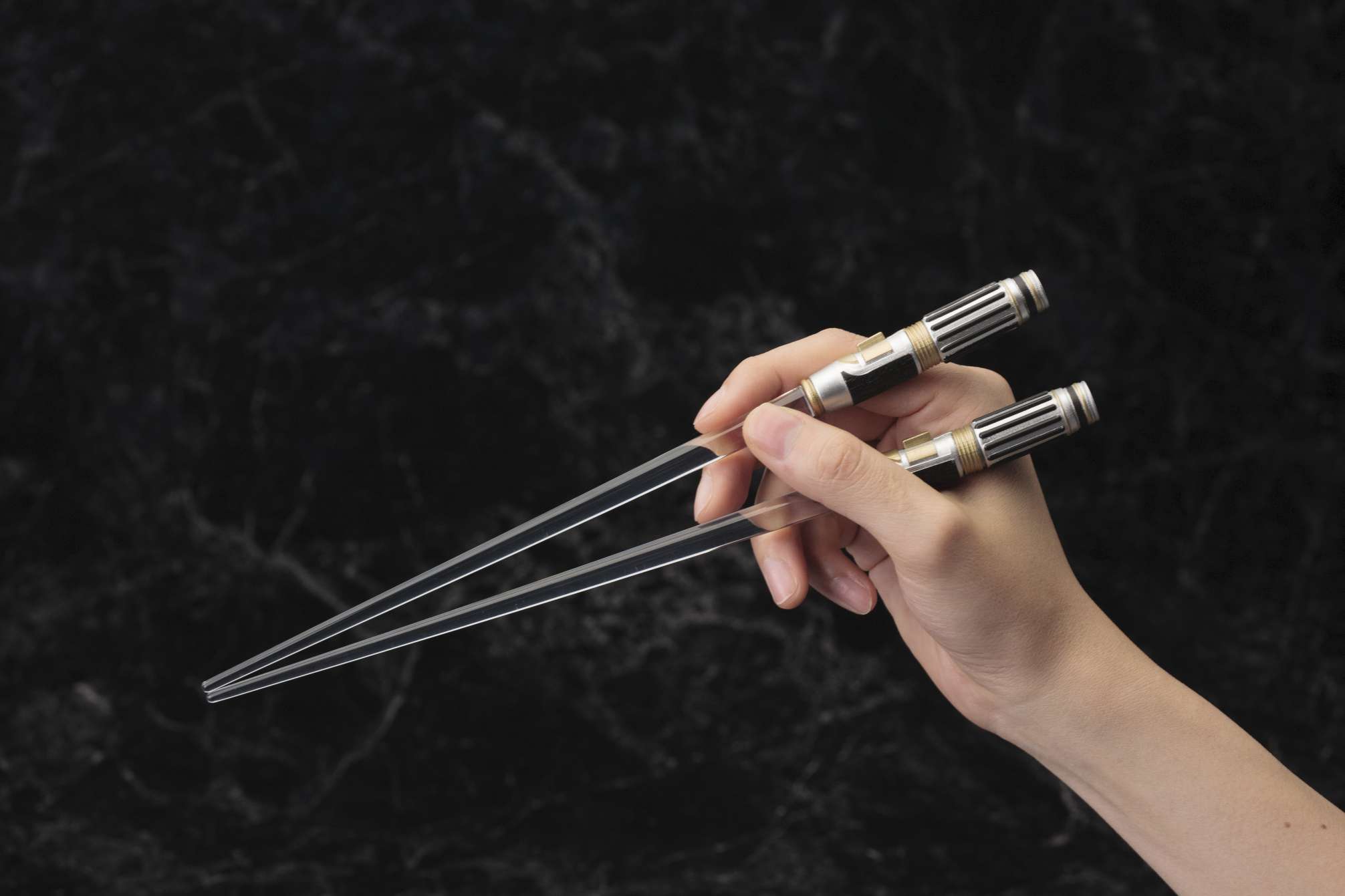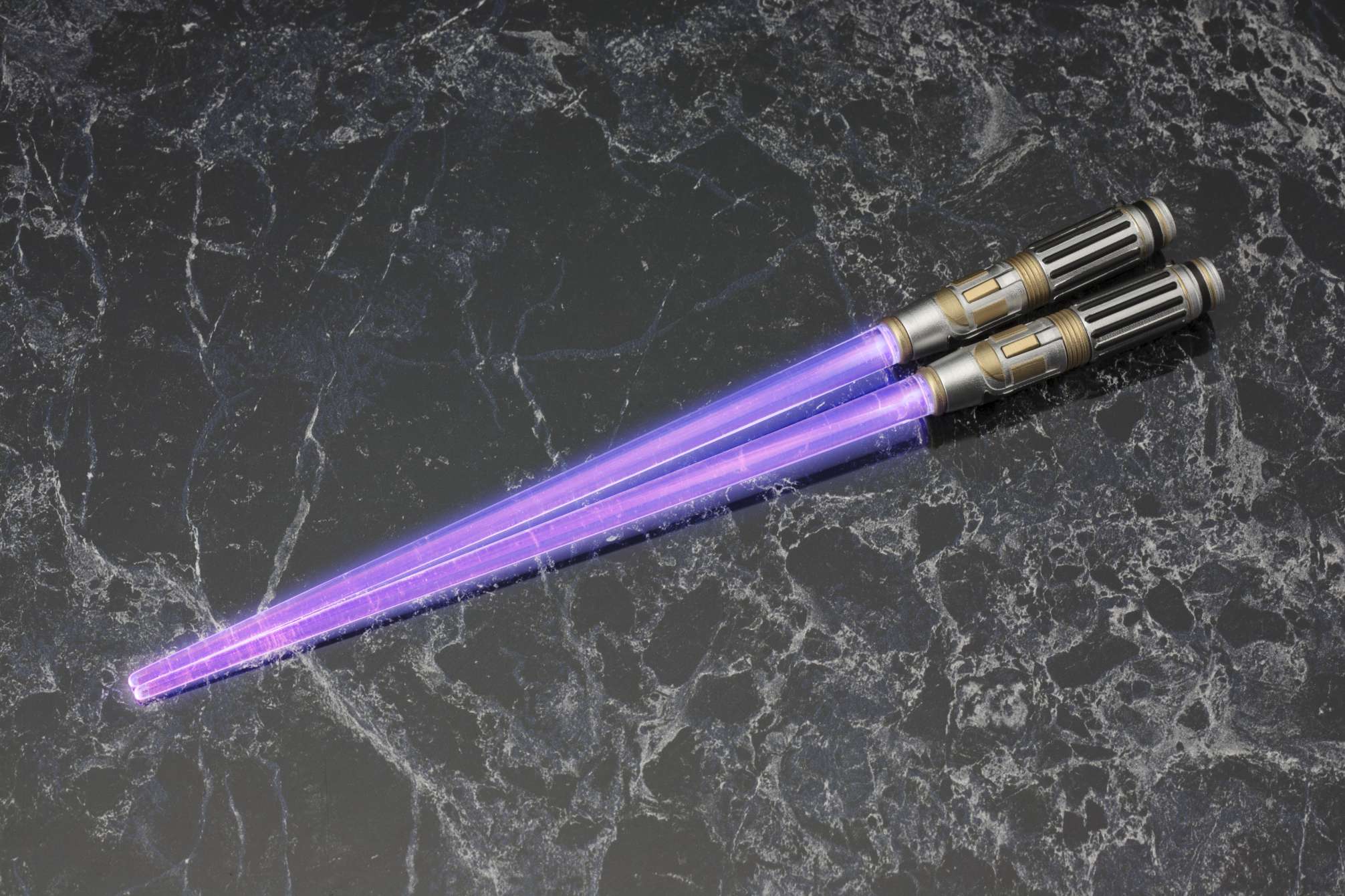 映画『スター・ウォーズ』より、LED発光ギミックを搭載した“光るお箸”第2弾は、ライトセーバーチョップスティックでも好評のジェダイ・マスター「ヨーダ」と「メイス・ウィンドゥ」。ヨーダはグリーンに光るライトセーバー、メイス・ウィンドゥは印象的な紫のライトセーバーをモデルに、劇中同様スイッチボタンをONにする事で刀身である箸先が光る仕様となっています。箸先端の光刃部分は無色透明のクリア成型となっており、取り外しが可能で、洗って清潔に保つことができます。スター・ウォーズファンへは勿論の事、パーティグッズやプレゼントとしても喜ばれる事間違いなしのアイテムです。貴方の食卓へフォースのパワーをお届けします。