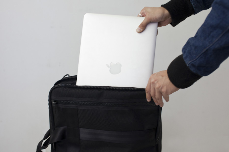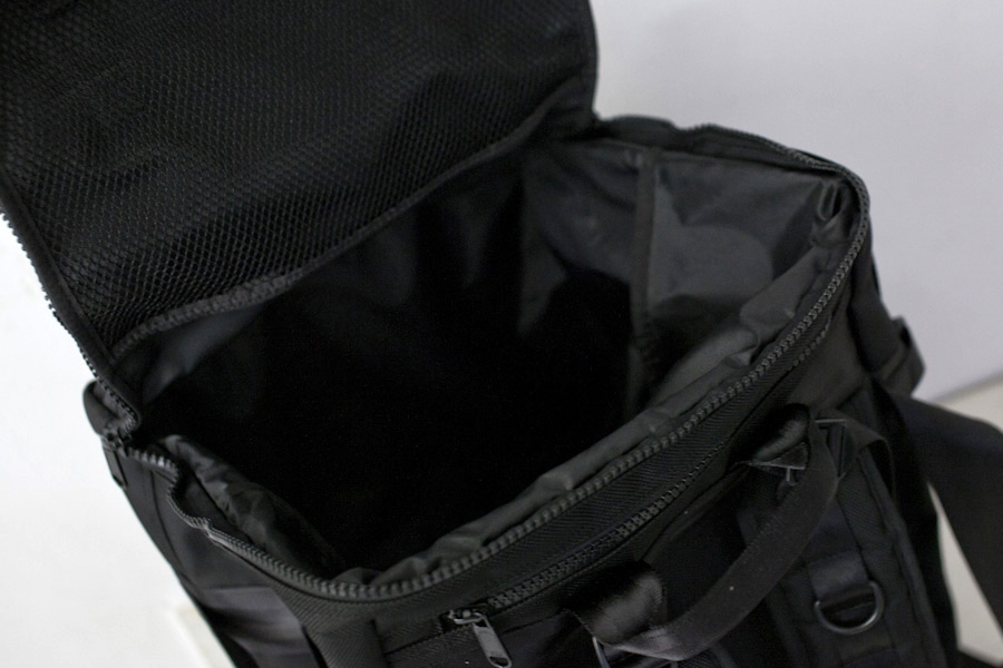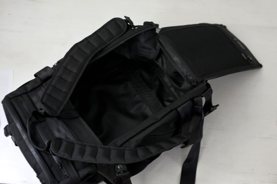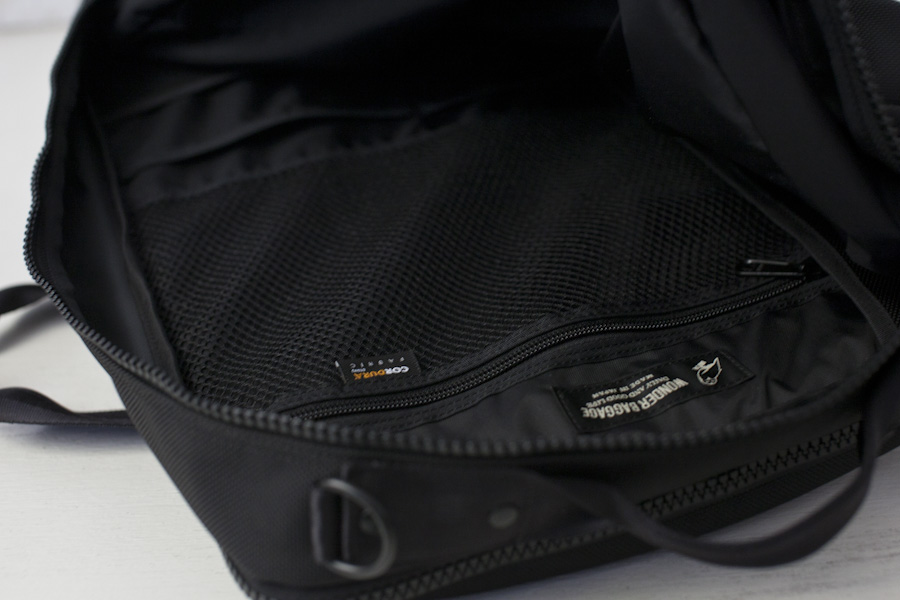 ブリーフバッグ同様に上部に配置されたコンパートメントが収納物に合わせた大きさに変化するようになっています。