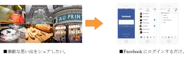 シェア機能:大切な旅の思い出。Facebookで今すぐシェア。