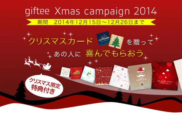 ギフトサービス「giftee」を運営する株式会社ギフティ(本社:東京都品川区/代表取締役:太田睦)は、同サービス内で2014年12月15日(月)より、「giftee Xmas Campaign 2014 “クリスマスカードを贈ってあの人に喜んでもらおう” 」を開始いたします。