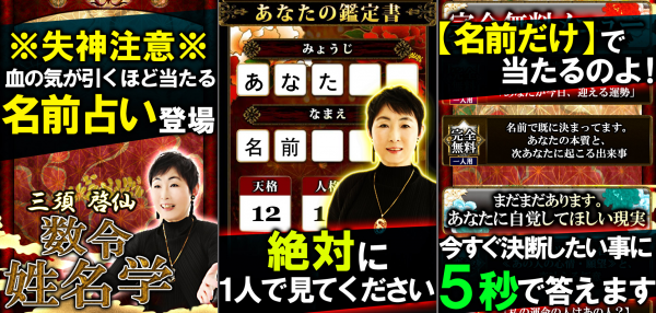 ・アプリ名称:『【裏まで見抜く!】ニホンの名前占い』