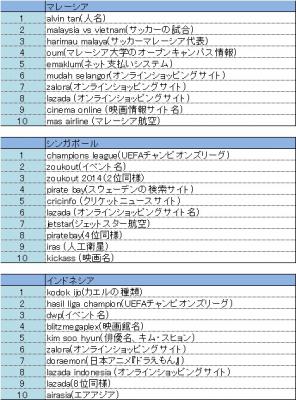 ・アジア10カ国の検索キーワードトレンド2014年11月24日~2014年11月30日 2014年12月1日リリース