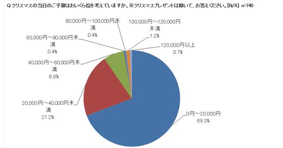 <クリスマス当日の予算、約70%が「2万円以内」と回答。男女の予算平均差は約1万円!>