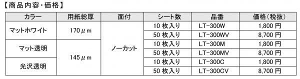 フィルムの種類は、マットホワイト、マット透明、光沢透明の3種類。カラーレーザープリンターのほか、カラーコピーにも対応します。メーカー希望小売価格(税抜)は10枚入り1,800円と50枚入り8,700円。
