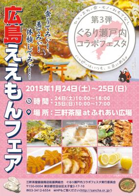 三軒茶屋銀座商店街振興組合(住所:東京都世田谷区太子堂2-17-10 飯島祥夫理事長)は2015年1月24日(土)~25日(日)の2日間、三軒茶屋ふれあい広場にて「第3弾ぐるり瀬戸内コラボフェスタ~広島ええもんフェア~」を開催いたします。