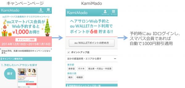 さらに、「auスマートパス」会員向けに、「KamiMado」からの予約(注3)時に施術料金が1,000円割引となるキャンペーン(注5)を実施するほか、2014年11月27日からは、「auスマートパス」上で「KamiMado」や「スキンケア大学」サイト内で配信されている美容コラムを掲載しています。