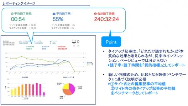 また、多くの媒体社では様々な閲覧データの活用が進んでおり、その代表的な事例を「READ REPORT Vol.4 -メディアによる閲覧意欲データ活用事例集-」として発表しました。本レポートは、活用事例を「セールス」「パフォーマンス解析」「編集」の視点でまとめており、ページビュー至上主義から「読まれたかどうか」に着目したメディア運営へのシフトを促すことを目的としています。