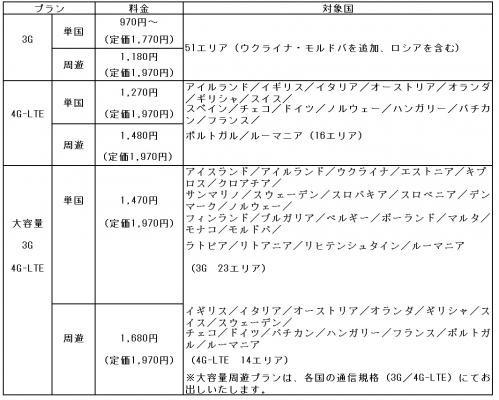 これにあわせ、一日あたりのデータ通信量を500MBまで保証することで好評いただいている“大容量ヨーロッパデータPLUSプラン“でもこれらエリアで4G-LTEにて提供をします。