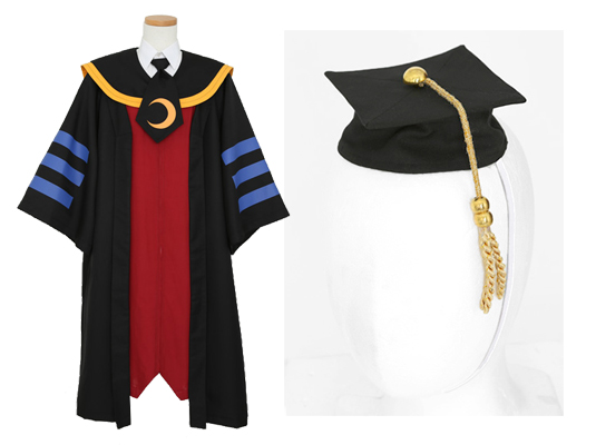 ガウン、ワンピース、ネクタイ、帽子がセットになっており、シャツと合わせるだけで「殺せんせー」になりきれるセット。