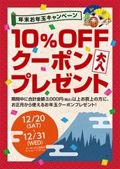 お正月から使えるお買い物10%OFFのお年玉クーポンをプレゼント