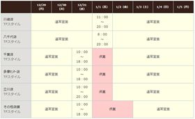 ※年明けの営業開始日は店舗によって異なります。