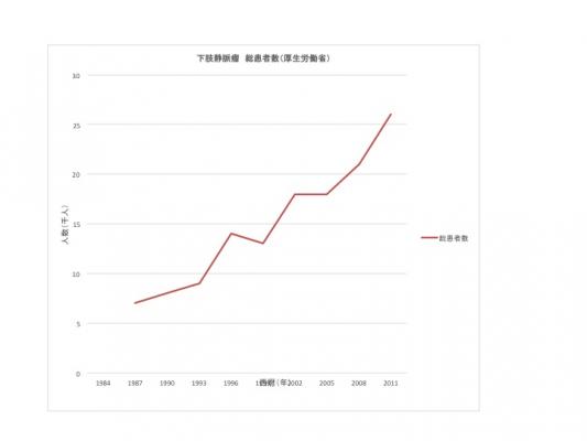 〈年々増加する下肢静脈瘤の患者数(厚生労働省調べ)〉