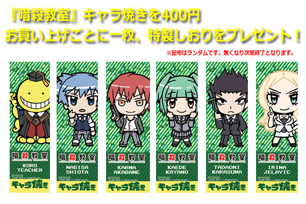 「烏間惟臣」「イリーナ」全6種類のキャラ焼きが新たに加わります。
