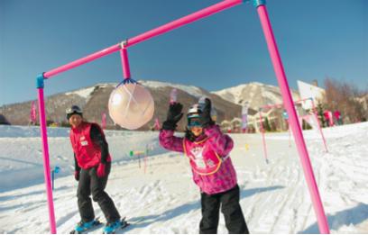 独自の教材を使って、くぐったり、たたいたり、ならしたり、遊び感覚でぐんぐんと上達するキッズスクールです。人気キャラクター「クレヨンしんちゃん」と一緒に室内、屋外の専用ゲレンデで楽しいレッスンを行います。