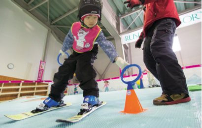 雪の代わりに滑走性の高いプラスチック製のマットとゴムマットを使用し、スキーを気軽に体験できます。レッスンは、幼児への 運動指導のプロである幼児体育指導員(日本幼児体育学会公認)が行い、幼児教育やバランス教育の要素を取り込みながらスキーを学習することで、子どもたち の主体性や協調性も養えるプログラムとなっております。2時間レッスンの前半は室内、後半は屋外の専用ゲレンデで練習します。