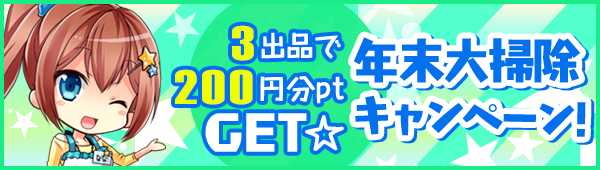 期間中、「にじいろ☆」にて3つ商品を出品する毎に、200円分のポイントをプレゼント!
