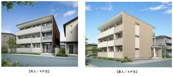 新商品「リゼオIII」は、木造2×4工法の3階建てシングル向けの賃貸住宅です。