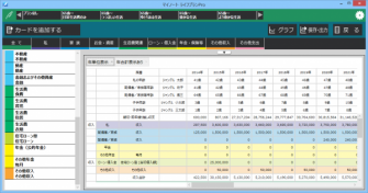 カードの追加変更、『マイノート 人生設計』で登録したデータの引用、シミュレーション期間の設定、シミュレーション結果の出力など多彩な機能を備えています。