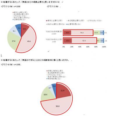 転職意向者に英語力が希望する転職先に必要だと思うか聞いたところ、76.6 %が「英語が必要」と感じており、さらに64.8%が日常会話レベル以上の英語力が必要だと感じていることがわかりました