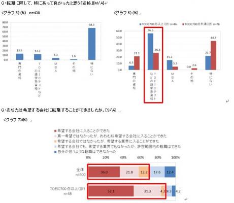 4、 英語力が高い人(TOEICスコア700点以上)は87.6%が希望する会社へ転職