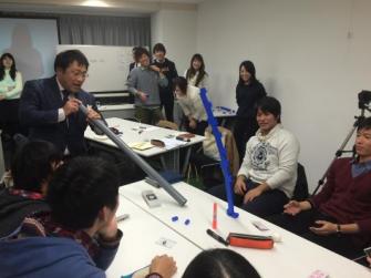 去年の秋から内容をリニューアルし、写真のように遊びをもって、学生さんたちに働く意義や人生について考えてもらっています。