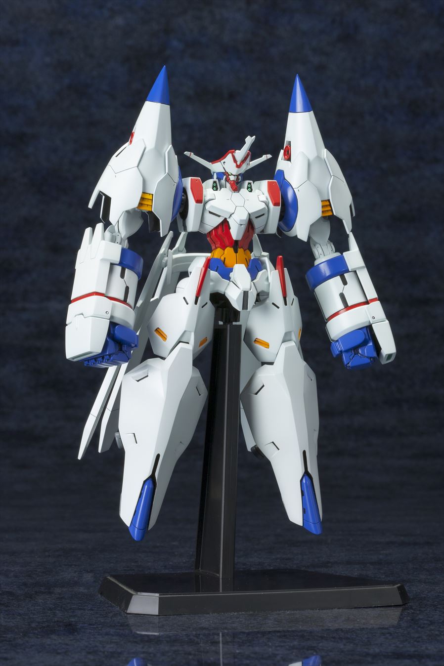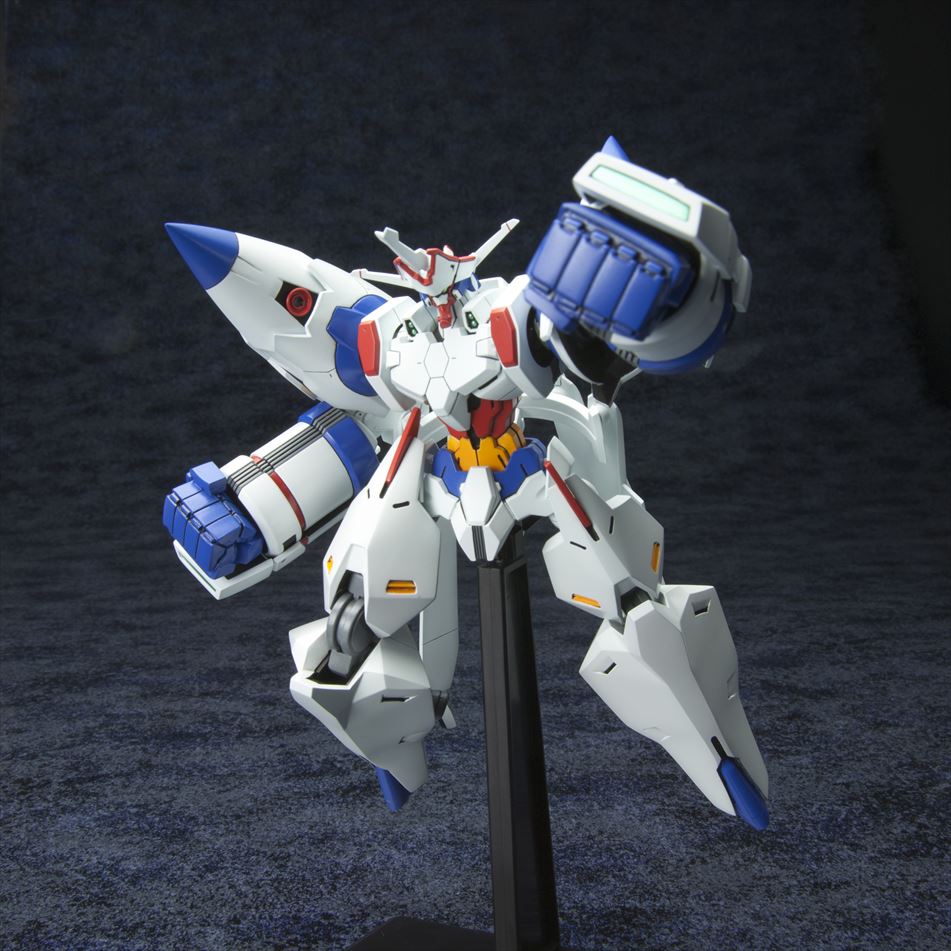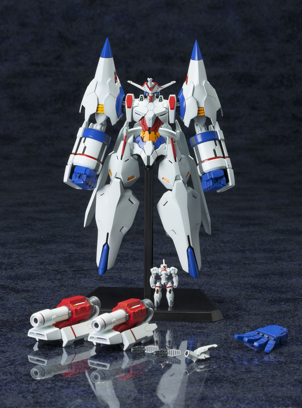 特徴的な表情平手が両手分付属し、腕部キャノン砲展開パーツ、胸部バルカン砲展開パーツが2個ずつ付属します。アースエンジン・インパクターの中枢ユニット「アースエンジン・オーディナリー」も付属し、四肢は軸可動します。最終話ラストバトルで使用した頭部砲を差し替えで再現可能です。また、劇中には登場しなかった特殊ギミック腕部ビームブレード・パーツが2個付属します。専用ベースもついており、様々なアクションポーズができます。