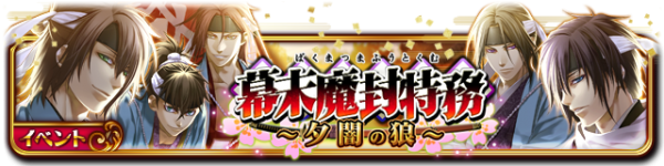 新年の見廻り中に現れた呪いの元凶である「狗神の尊」や羅刹兵らを「新選組の彼ら」と共に討伐するイベント「幕末魔封特務~夕闇の狼~」。