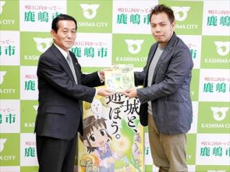 株式会社メディクリエ(茨城県つくば市)は茨城県の委託事業により、茨城県の魅力をPRする茨城県産アニメーション『あぐかる』の新シリーズ『あぐかるPLAY WITH IBARAKI編』を制作中。1月7日(水)、『あぐかる』の監督・芦名みのる氏が鹿嶋市役所を訪れ、1月10日(土)の公開に先立ち、「第15話鹿嶋市鹿島神宮」のDVDを錦織孝一鹿嶋市長に贈呈、完成を報告した。