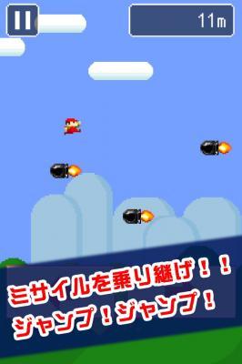 迫りくるミサイル速度にタイミングをあわせて、うまくミサイルの上に着地できるかがポイントです。