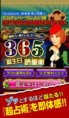 「激的中!365日占い」は表参道・青山界隈人義No.1の『超・人気占い師』であるキャメレオン竹田氏があなたの運勢を占うiPhoneアプリです。