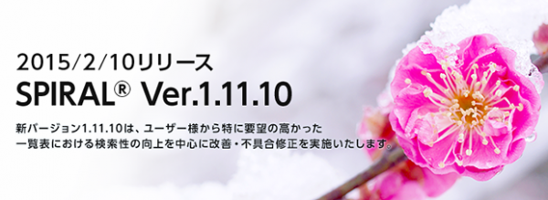 株式会社パイプドビッツ(本社 東京都港区、代表取締役社長CEO 佐谷宣昭、証券コード3831、以下「パイプドビッツ」)は、情報資産プラットフォーム「スパイラル(R)」をバージョンアップし、2015年2月10日より新バージョン1.11.10の提供を開始します。本日1月21日に新バージョン1.11.10のβ版を受付開始しますので、併せてお知らせいたします。