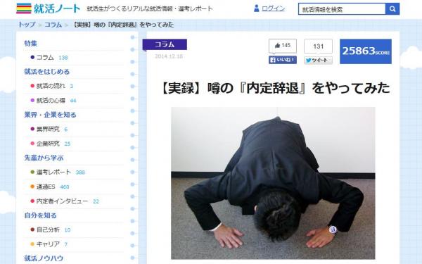2014年1月21日現在、1,298記事が寄稿されている中、人気を集めているのは、就活マナーやエントリーシートの記入方法など『ノウハウ』モノではなく、実体験が生々しく書かれた『実録』モノです。