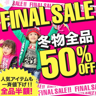 株式会社コージィコーポレーションが運営するベビー・キッズ服ブランドBABYDOLL(ベビードール)がBABYDOLL・STARVATIONS各店、通販各店にて[セール全品半額!ファイナルセール]を1/23(金)より開催しています!