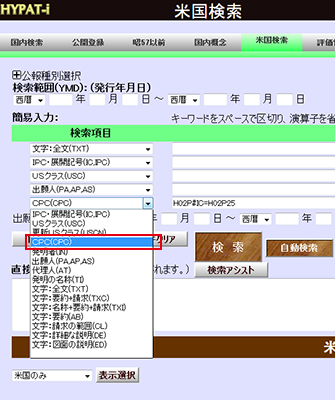 中でもこの度、米国検索の検索項目に特許分類「CPC(Cooperative Patent Classification)」が、1月28日19:30より追加されます。