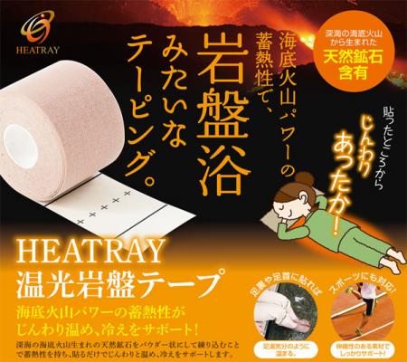 今回発売いたします『温光岩盤テープ』は、そうしたノウハウを活かし、高い蓄熱性・遠赤外線放射性を持つ厳選の天然鉱石パウダーをテープの粘着面に練り込むことで “あたためる” 要素を加えた、言わば岩盤浴みたいなテーピングです。