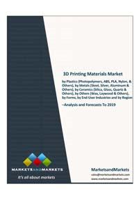 3D Printing Materials Market by Plastics (Photopolymers, ABS, PLA, Nylon, & Others), by Metals (Steel, Silver, Aluminum & Others), by Ceramics (Silica, Glass, Quartz & Others), by Others (Wax, Laywood & Others), by Forms, by End-User Industries and by Region - Global Trends & Forecasts to 2019