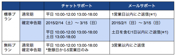 確定申告時期はユーザー様の悩みにタイムリーにお答えできるよう、サポート体制を強化致します。標準プランのお客様を対象に土日もメール・チャットの対応致します。