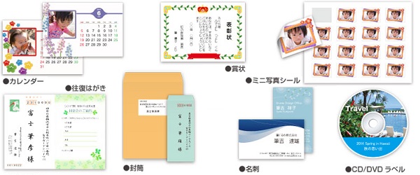 ●往復はがき ●クリスマスカード ●名刺 ●名前シール ●カレンダー ●CD / DVDラベル ●ミニ写真シール