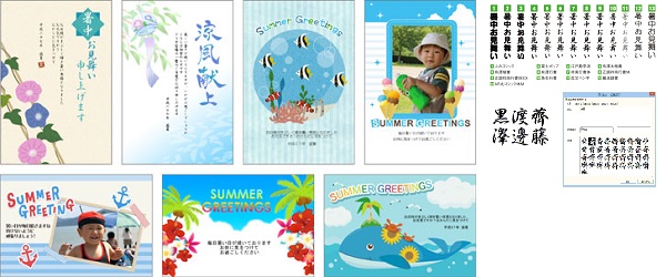 暑中見舞いや残暑見舞い、年賀状用素材も豊富に含まれ、一年を通じてご利用いただけます。