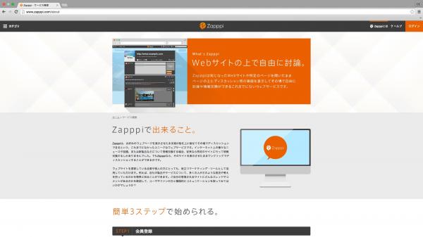 Zapppiは、これまでのWeb上でのディスカッションサイトとは違い、閲覧しているWebページの上に新たなページを作り、投稿閲覧ができるユニークなサービスです。