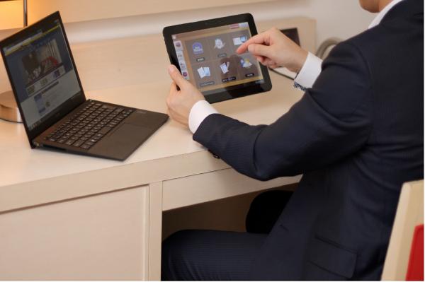 従来の「ee-Tab*(イータブ・プラス)」のコンテンツである館内案内、天気、テレビ番組表、動画、電子書籍、ホテル周辺観光スポット、ホテル近隣情報に加えて、今回のコラボレーションによって新たにオンラインショッピングサイトが追加される事となります。