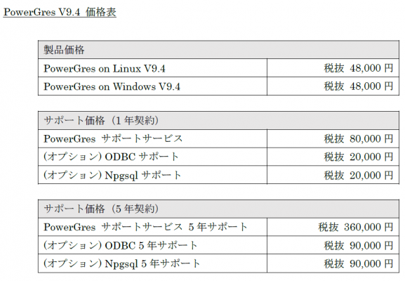 製品名:PowerGres on Linux V9.4, PowerGres on Windows V9.4