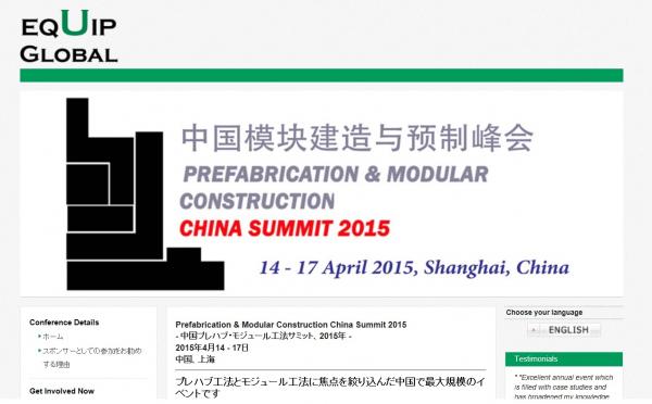 会議:「Prefabrication & Modular Construction China Summit 2015-中国プレハブ・モジュール工法サミット 2015年」
